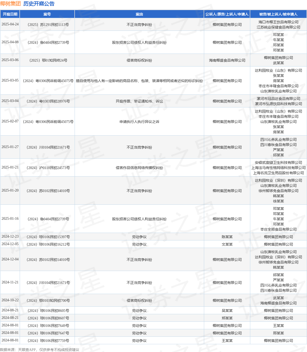 本站消息,根据天眼查APP显示,近日公布了一则椰树集团有限公司作为原告/上诉人的开庭公告,详细内容如下: